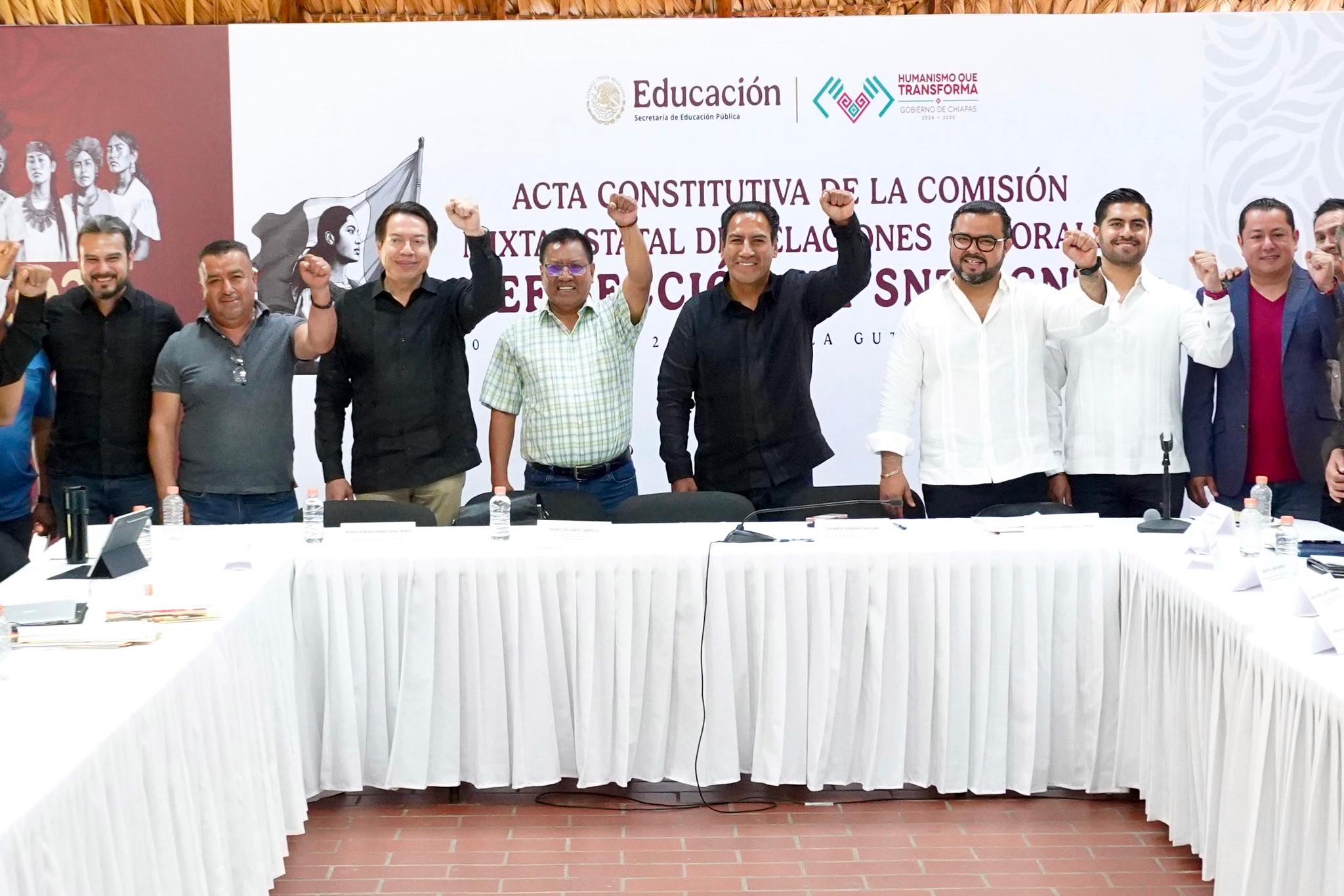 El Gobernador de Chiapas, Eduardo Ramírez, encabezó este miércoles la firma del Acta Constitutiva de la Comisión Mixta Estatal de Relaciones Laborales SEF-SECCIÓN VII SNTE-CNTE, en compañía del Secretario de Educación, Mario Delgado Carrillo, y destacados integrantes del magisterio chiapaneco. Este acto representa un paso importante hacia la mejora de las condiciones laborales de los docentes y el fortalecimiento de la educación en la entidad.
